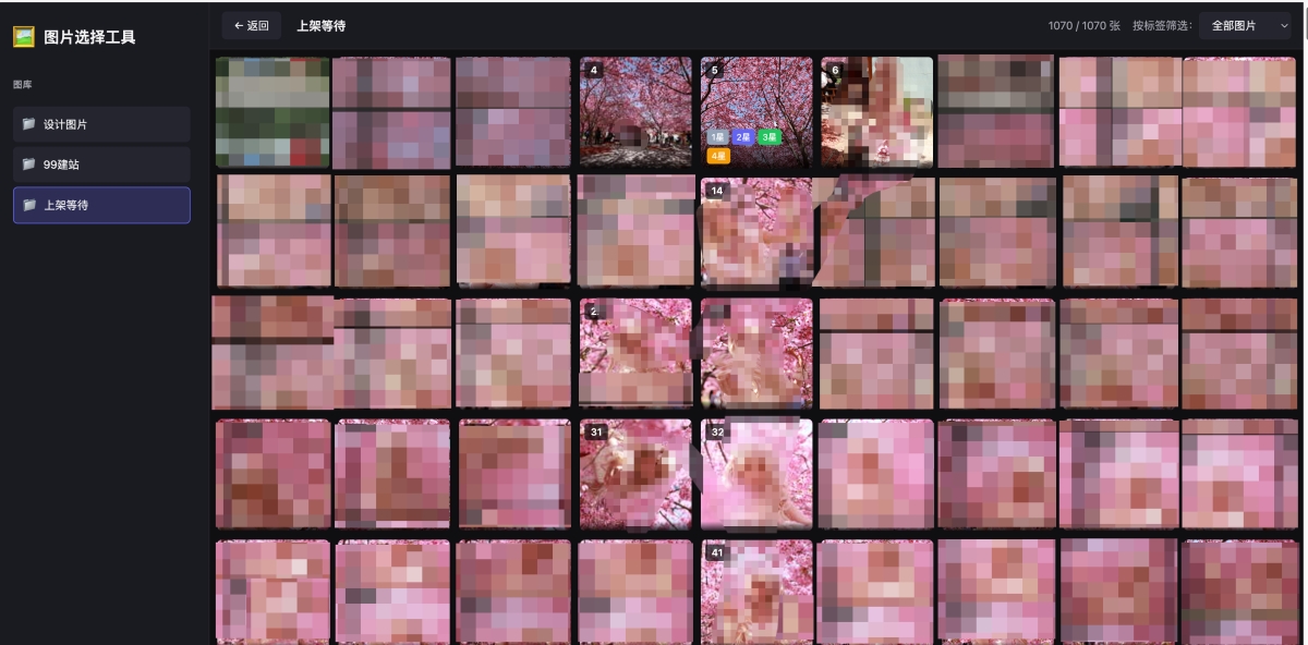 基于 Vue 3 的图片选择与标签管理,获取图库与图片列表,支持 1~5 星标签、按标签筛选和打包下载。