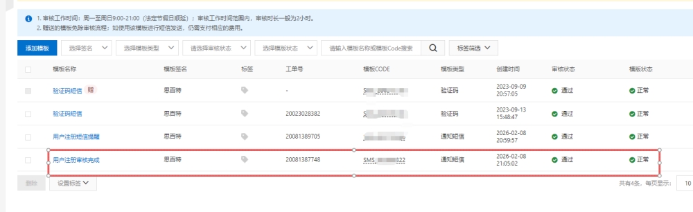 想实现用户注册,审核后短信通知。可该设置的都设置好了,还是不行。不知道为什么?
